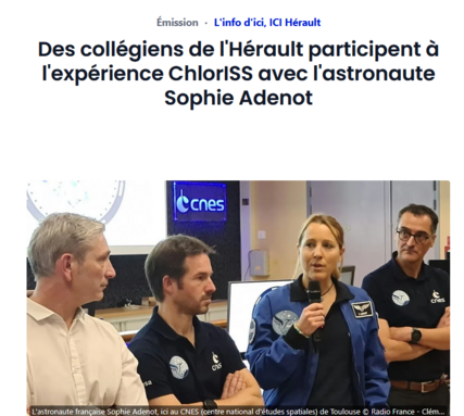 Le 08 avril 2026, le collège FONTCARRADE a été sous les projecteurs de l'actualité spatiale dans les journaux de la Matinale d'ICI Hérault pour sa participation à l'expérience ChlorISS intitulée " Prends-en de la graine ! ".
